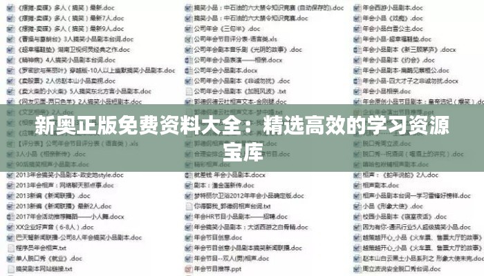 随着科技的飞速发展和信息的爆炸式增长,人们对于学习和获取知识的渴望愈发强烈,为了满足广大学习者的需求,新奥正版免费资料大全:精选高效的学习资源宝库应运而生,这一平台致力于为广大用户提供高质量、正版、免费的学习资源,助力用户更高效地学习和获取所需知识。