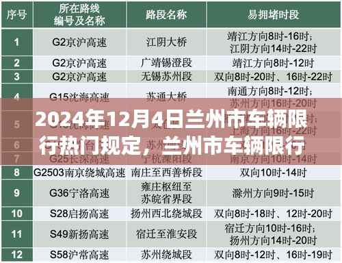 随着城市化进程的加快,交通拥堵问题愈发严重,空气质量也受到一定的影响,为了缓解交通压力,改善空气质量,兰州市政府决定实施车辆限行措施,本文将重点解析即将于2024年12月4日实施的兰州市车辆限行规定的要点,帮助广大市民更好地了解和适应这一政策。