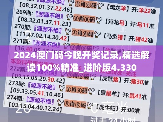 本文旨在细致传达2024澳门码今晚开奖记录的最新动态,以及对其进行精选解读,确保信息的100%精准传递,进阶版为4.330。欢迎读者关注澳门政策文件的发布,了解最新的澳门码开奖记录信息。