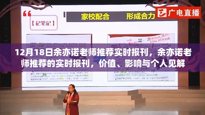 随着信息技术的飞速发展,实时报刊在传递最新资讯、引导社会舆论方面扮演着越来越重要的角色,余亦诺老师于12月18日推荐的实时报刊,不仅为我们提供了丰富的新闻信息,更在深度和广度上反映了当下社会的热点和趋势,本文将围绕这一推荐,探讨实时报刊的价值、可能存在的正反两面影响,以及我个人的一些观点和看法。