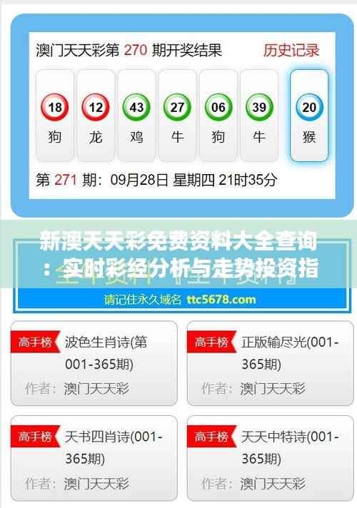 除了利用新澳天天彩免费资料大全查询等工具外,投资者还需要深入了解彩票知识,关注市场动态,结合自身实际情况进行投资,保持理智的投资心态也是非常重要的。