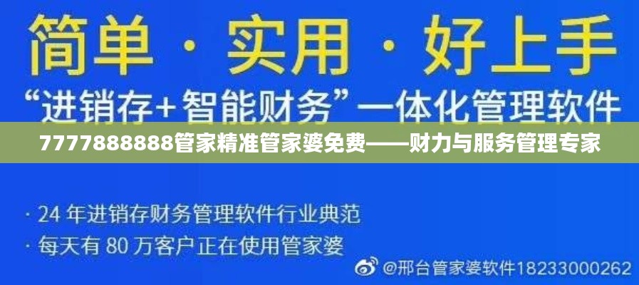 “7777888888管家精准管家婆免费服务”是一个品牌、一种理念,更是一种全新的服务,它代表着全方位的财务和生活管理服务,旨在为澳门地区的政策文件制定者、执行者和民众提供无缝的服务体验。“管家婆”在这里不仅是一个角色,更是一种形象,强调对细节的关注和对精确管理的追求,而“免费”的概念则意味着这一服务以无微不至、不计成本的方式为澳门地区提供支持。