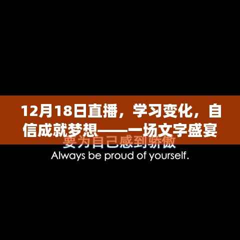 亲爱的朋友们,今天是12月18日,一个充满活力和变化的日子,在这个充满无限可能的时刻,我们相聚在直播的舞台上,共同见证一场关于学习、变化和自信的励志盛宴,让我们一起用文字的力量点燃心中的热情,成就我们的梦想!