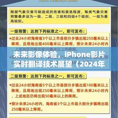随着科技的飞速发展,人工智能(AI)技术已逐渐渗透到我们生活的方方面面,智能翻译技术更是取得了显著进步,站在时间的肩膀上看未来,让我们以专业的视角,轻松探讨一下到2024年12月18日iPhone影片实时翻译技术可能带来的革新与体验,本文将从技术发展的角度,着重讨论要点一、要点二和要点三。