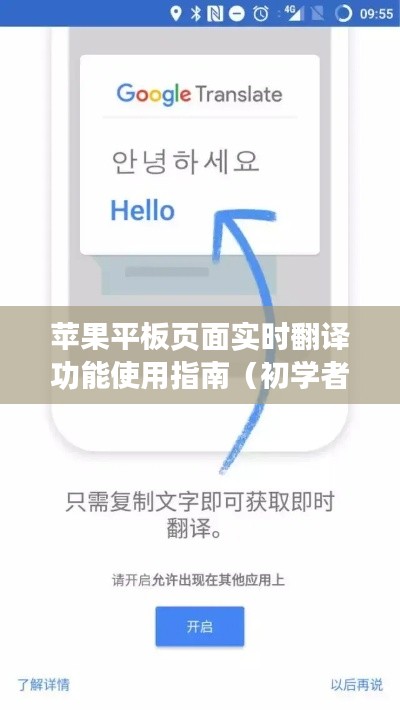 3、在阅读过程中实践并积累词汇,虽然实时翻译功能非常便利,但建议用户在实际语境中积累词汇和短语,以提高语言能力和理解力,通过不断学习和实践,您将逐渐提高您的语言能力,对于初学者来说,这是一个渐进的过程,但每一步都是值得的,进阶用户可以通过阅读高级文章或参与讨论来挑战自己,无论您是初学者还是进阶用户,都可以从本指南中获得实用的知识和技巧来提高您的语言交流能力,请务必保持学习的热情和耐心,享受使用苹果平板进行实时翻译的便捷体验!通过不断的学习和实践,您将能够充分利用这一强大的功能来拓宽视野和交流圈子。五、总结回顾本指南详细介绍了苹果平板页面实时翻译功能的操作流程和进阶技巧,旨在帮助初学者和进阶用户更好地利用这一功能进行语言交流和学习,我们特别预测了未来版本的功能更新并给出了相应的操作指导,以帮助读者提前了解和适应新的功能变化,通过本指南的学习和实践,您将能够充分利用苹果平板的实时翻译功能来拓宽视野和交流圈子。六、注意事项在使用苹果平板的实时翻译功能时,需要注意以下几点:1. 翻译结果可能存在一定的误差和不准确性,特别是在处理复杂语境和专业术语时,对于重要的信息或决策建议进行进一步的核实和确认,2. 尊重原文作者和版权信息,在引用或分享他人内容时,请遵守相应的版权规定并注明出处,同时避免使用机器翻译进行恶意篡改或误导他人行为的发生,通过遵循这些注意事项和建议的使用方式,您将能够更安全、有效地利用苹果平板的实时翻译功能进行学习和交流。七、结语随着科技的不断发展进步和创新突破未来苹果平板的实时翻译功能将会更加强大和智能本指南将持续更新和改进以适应新的技术变革和学习需求希望读者们能够保持学习的热情和好奇心共同探索科技的无限可能!