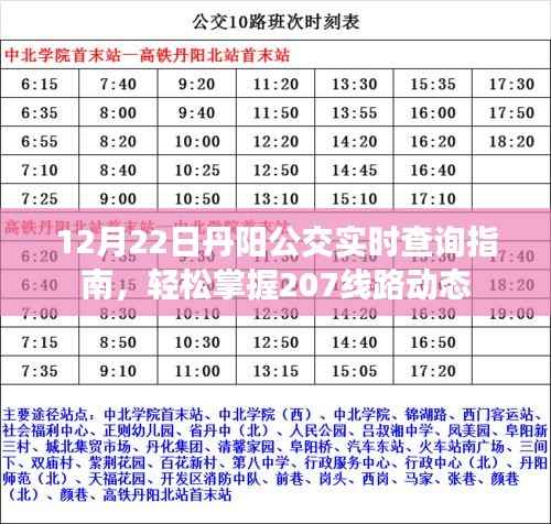 随着城市的发展,公共交通日益成为市民出行的重要选择,在丹阳这座美丽的城市,公交系统作为城市交通的重要组成部分,其便捷性和实时性备受关注,特别是临近年末,随着节日的临近和天气的变化,公交运行情况倍受市民关心,本文将为您详细介绍如何在12月22日实时查询丹阳公交207线路信息,助您轻松掌握公交动态,高效出行。