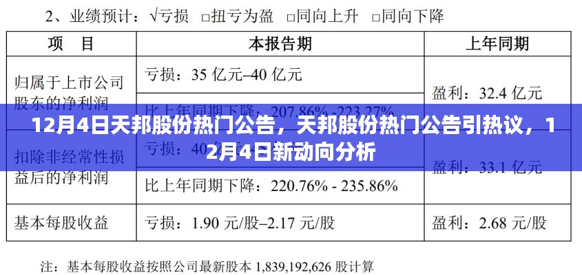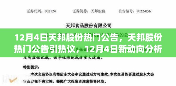 随着市场动态的日新月异,企业公告往往成为投资者关注的焦点,特别是在重要的时间节点,如12月4日,天邦股份发布的最新公告引起了市场的广泛关注,本文将针对这一公告,从不同角度阐述分析,并表达个人观点。