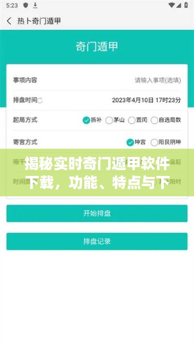 实时奇门遁甲软件是一种融合了传统文化与现代科技的工具,通过本文的介绍,相信读者对实时奇门遁甲软件有了更深入的了解,在下载和使用软件时,请遵循本文的下载指南和建议,以确保安全和效果。