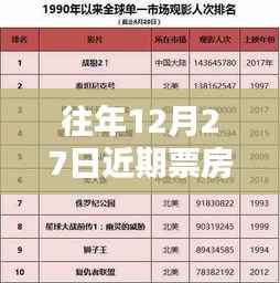 随着电影市场的繁荣,观众们对于电影的热情日益高涨,每年的电影票房排行榜都是影迷们关注的焦点,特别是在临近年末的时候,各大影片纷纷上映,竞争愈发激烈,本文将为您实时报道往年12月27日的票房排行榜情况。