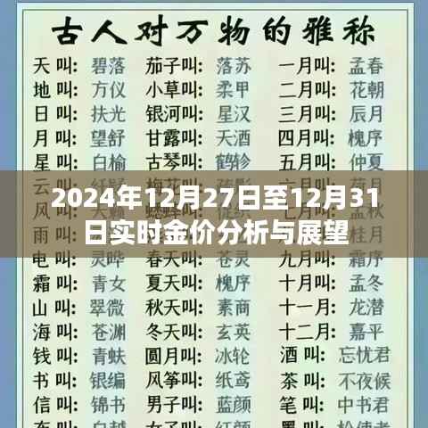 随着全球经济形势的不断变化,黄金作为一种重要的贵金属和大宗商品,其价格受到众多投资者的关注,本文将重点关注2024年最后一周的实时金价走势,分析其间黄金价格的波动原因,并展望未来的价格趋势。