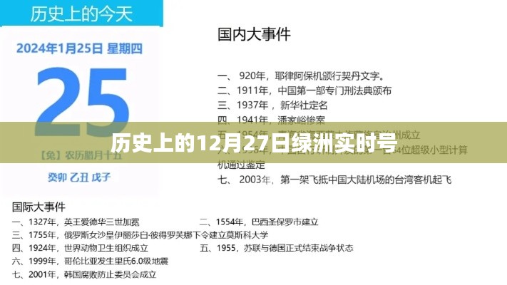 历史上的12月27日,是世界各地文化、政治、科技等多个领域发展的重要时刻,绿洲实时号作为记录与传播这些历史事件的重要平台,为我们呈现了这一天世界各地的精彩瞬间,本文将通过绿洲实时号的视角,回顾历史上的12月27日发生的重要事件。