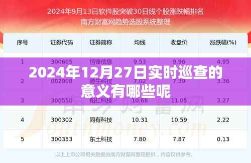 随着科技的进步和社会的发展,实时巡查在现代社会管理中扮演着越来越重要的角色,特别是在2024年这样一个信息化、数字化高速发展的时期,实时巡查的意义愈发凸显,本文将探讨在2024年12月27日这一天,实时巡查所具有的多方面意义。