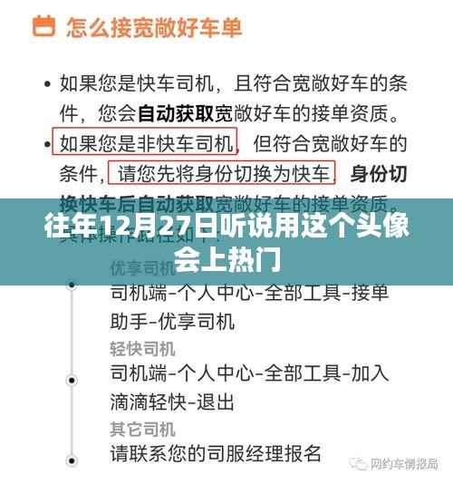 据传闻,每年的12月27日,使用某个特定的头像在社交媒体上更容易受到关注,成为热门的焦点,这个头像可能是一张有趣的图片,或者是一个具有特殊意义的符号,甚至是一个简单的表情,无论是出于什么原因,很多人都选择在这一天更换头像,希望能够借此机会获得更多的关注和认可。