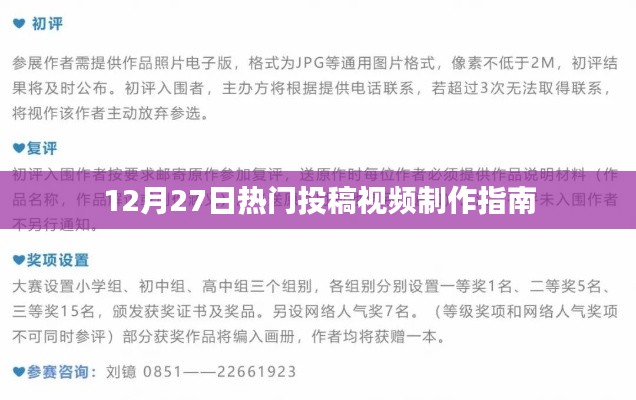 随着互联网的普及和社交媒体的飞速发展,视频内容已成为大众获取信息、娱乐消遣的重要途径,尤其在年末节日氛围浓厚之际,热门投稿视频更是吸引了无数网友的关注,如果你想在12月27日制作一则热门投稿视频,以下是一些制作指南,帮助你从零开始,完成一个吸引人的视频作品。