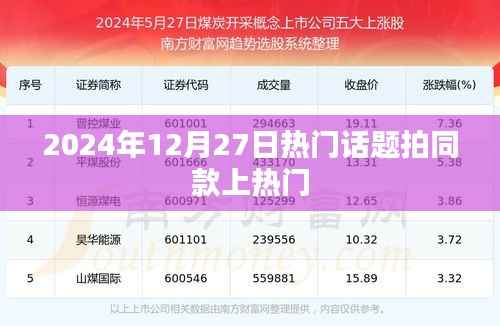 随着互联网的普及和社交媒体的飞速发展,人们对于热门话题的关注度日益提高,特别是在特定的时间点,如2024年12月27日,热门话题的影响力将达到一个新的高峰,本文将探讨这一天的热门话题,并分享如何通过拍摄同款内容来上热门,吸引更多关注和流量。
