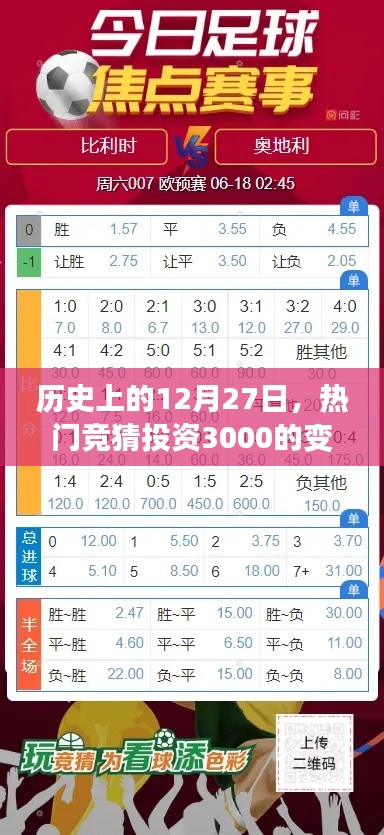 每年的12月27日,对于许多热爱投资和竞猜的人来说,都是一个值得纪念的日子,这一天不仅承载着丰富的历史记忆,更在某种程度上预示了未来投资趋势的微妙变化,本文将围绕“历史上的12月27日”这一主题,探讨热门竞猜投资3000背后的故事,以及这一天在全球投资市场中的特殊地位。