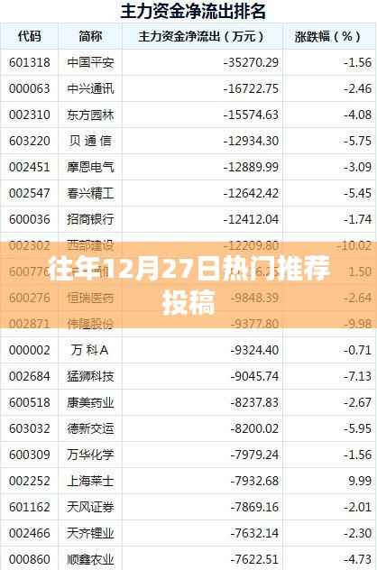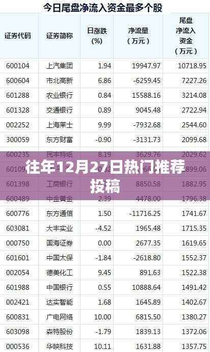 往年12月27日的热门推荐投稿涵盖了多个领域,从时事新闻到科技产品发布,从娱乐八卦到深度好文,都展现了这一天的丰富和多彩,随着时代的发展,我们将继续关注这一天的最新动态和热门话题,为广大网友带来更多精彩内容,我们也期待在未来的一年中,各个领域能够取得更大的进步和发展,为我们的生活带来更多的惊喜和便利。