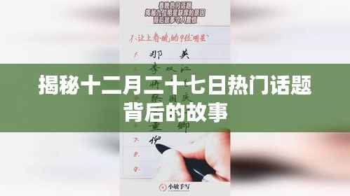 十二月二十七日的热门标题背后都有着丰富多彩的故事,这些故事不仅引发了人们的关注和讨论,也反映了社会的变化和进步,让我们共同关注这些热门话题背后的故事,一起迎接新的一年,在这个充满希望和梦想的时刻,让我们携手共进,共同创造更加美好的未来。