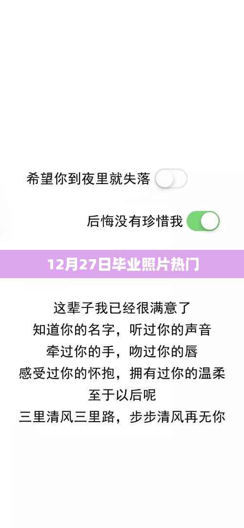 毕业照片是记录青春时光的重要载体,它见证了学子们从校园走向社会的过渡,在这张照片中,学子们的笑容、泪水、不舍和期待都被定格在瞬间,成为永恒的记忆,每年的毕业季节,毕业照片都会成为社交媒体上的热门话题,尤其是像12月27日这样的特殊日子,更是备受关注。