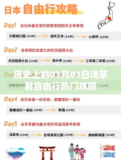 历史上的每一个日子都有其独特的韵味和故事,而一月三日这一天,对于热爱旅行的朋友们来说,更是一个值得纪念的日子,本文将为您呈现历史上的01月03日浅草君自由行热门攻略,带您领略这一天的独特魅力。