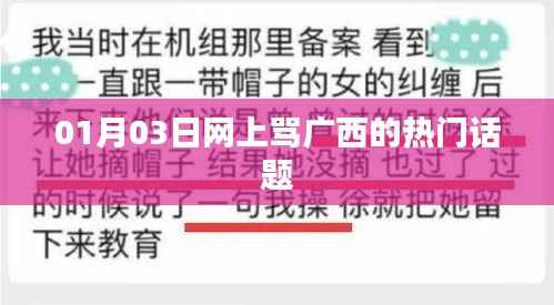 网络上的热门话题反映了社会的多元性和复杂性,针对1月3日网上骂广西的热门话题,我们应该保持理性、客观的态度,尊重各地文化差异,反对地域歧视,政府和社会各界也应加强合作,采取措施应对网络言论对社会的影响,维护网络秩序和社会和谐稳定。