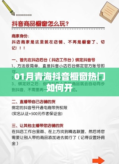 随着科技的快速发展,抖音已经成为人们日常生活中不可或缺的社交娱乐平台,在青海这片美丽的土地上,越来越多的人希望通过抖音橱窗功能展示自己的特色产品,吸引更多的关注和客户,本文将详细介绍在1月份如何开启青海抖音橱窗热门,帮助您在抖音平台上取得成功。