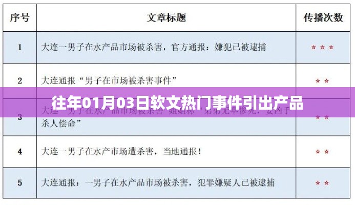 在每年的伊始,我们都会迎来一系列引人关注的事件,而在往年的一月三日,一个特别的热门事件成为了公众关注的焦点,这一事件不仅引发了广泛的讨论,还激发了人们对相关产品的极大兴趣,本文将回顾这一事件,并引出与之相关的产品。