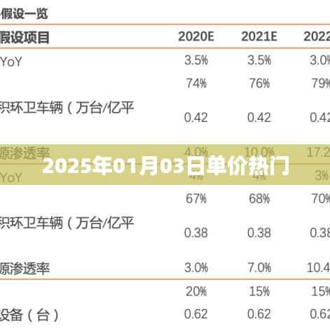 随着时光的推移,我们迎来了2025年1月3日这一天,这一天,全球各地的市场都在热议着各种商品和服务的单价,本文将带你了解这一天的单价热门话题,从全球各地的市场趋势到新兴产业的崛起,以及消费者的购物心态变化。