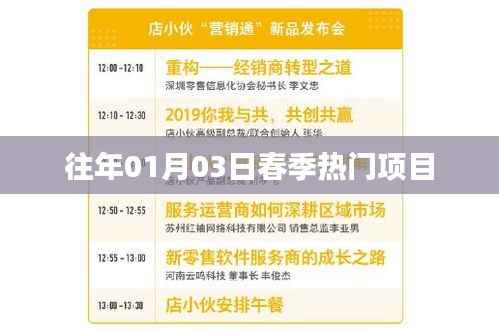 往年1月3日春季的热门项目涵盖了多个领域,展现了春季项目的多样性和广泛性,无论是农业科技、新能源、电子商务,还是健康养生、文化创意产业、智能制造、教育培训和旅游开发,都有许多值得关注的热门项目,让我们共同期待这些项目在未来的发展中创造更多的价值和成果。