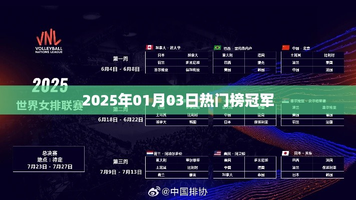 随着科技的飞速发展和互联网的普及,热门榜单已经成为人们关注的焦点,在这个信息爆炸的时代,谁能在激烈的竞争中脱颖而出,成为热门榜冠军,无疑是一种巨大的荣誉,本文将为您揭示2025年1月3日热门榜冠军背后的故事,带您领略这一荣誉的辉煌。
