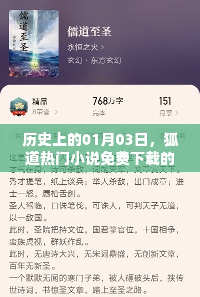 随着科技的进步和互联网的普及,人们对文化娱乐的需求日益增长,小说作为人们喜爱的文学形式之一,其传播方式和阅读方式也在不断变化,本文将带你回顾历史上的1月3日,这一天在小说领域里发生的重大事件,特别是狐道热门小说的免费下载潮流。