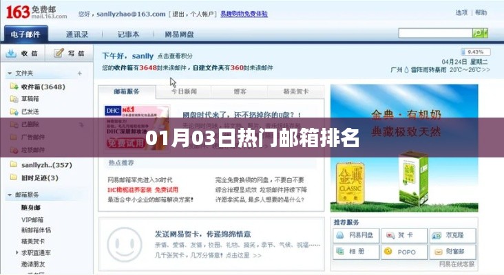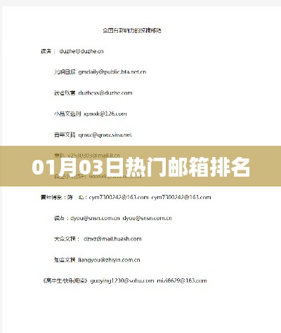 随着互联网的普及和通讯技术的发展,电子邮箱已成为人们日常生活中不可或缺的一部分,无论是个人还是企业,邮箱都是进行信息交流、文件传输的重要工具,本文将对01月03日的热门邮箱进行排名,以便大家了解目前最受欢迎、使用最广泛的邮箱服务。