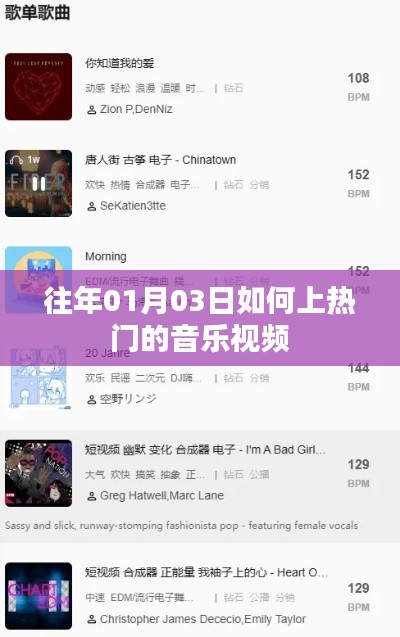 随着互联网的普及和社交媒体的飞速发展,音乐视频已成为大众娱乐生活的重要组成部分,特别是在每年的年初,人们渴望通过新鲜的音乐视频来迎接新的一年,本文将探讨在往年01月03日,如何制作和推广音乐视频以吸引更多关注,成功登上热门榜单。