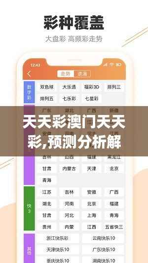 澳门天天彩是澳门特别行政区的一种高频开奖彩票,简称“澳门天天彩”或“天天彩”,其特点在于每天进行开奖,受到许多彩票爱好者的喜爱。