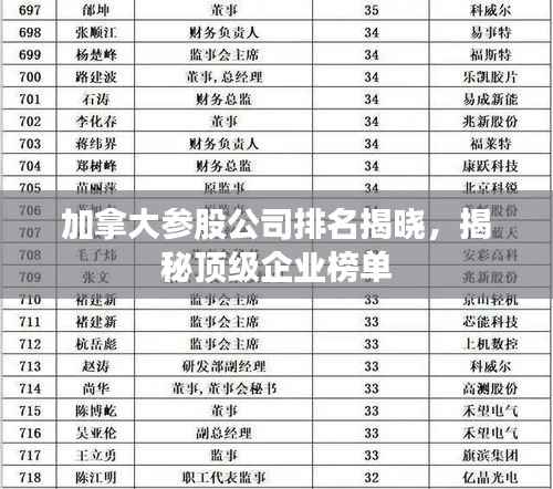 随着全球经济一体化的深入发展,跨国企业间的合作日益频繁,加拿大,以其稳定的政治环境、丰富的自然资源和发达的经济体系,吸引了众多国际企业来此投资,本文将为您详细介绍加拿大的一些主要参股公司排名。