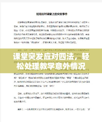 在教育教学过程中,课堂突发情况的出现是不可避免的,这些突发情况可能会影响到教学的正常进行,甚至会对学生的学习造成一定的影响,作为教师,我们需要掌握一些有效的课堂突发应对方法,本文将介绍四种应对方法,帮助教师更好地处理课堂突发情况。