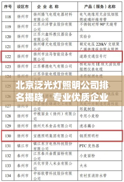 随着城市化进程的加快,照明行业在城市建设与发展中扮演着越来越重要的角色,作为中国的首都,北京拥有众多的泛光灯照明公司,它们在为城市提供美丽夜景的同时,也推动了照明行业的发展,本文将为您介绍北京泛光灯照明公司的排名。
