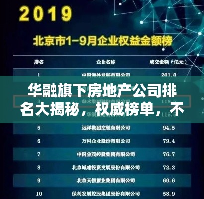 随着国内经济的蓬勃发展,房地产行业日益成为国民经济的重要支柱,在众多房地产企业中,华融旗下的房地产公司凭借其卓越的实力和业绩脱颖而出,成为了业界的佼佼者,本文将深入探讨华融旗下房地产公司的排名及其背后的原因。