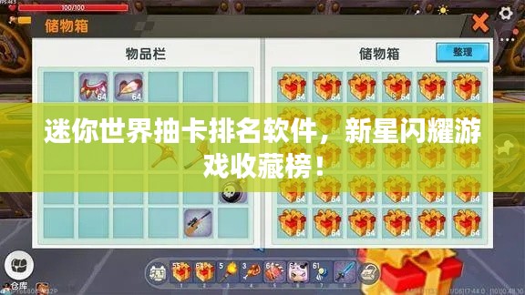 随着科技的快速发展,电子游戏已经成为人们生活中不可或缺的一部分,在众多游戏中,迷你世界以其独特的魅力吸引着众多玩家,而今天,我们将聚焦于一个帮助玩家更好地体验迷你世界的工具——迷你世界抽卡排名软件,这款软件的出现,无疑为众多热爱迷你世界的玩家带来了福音。