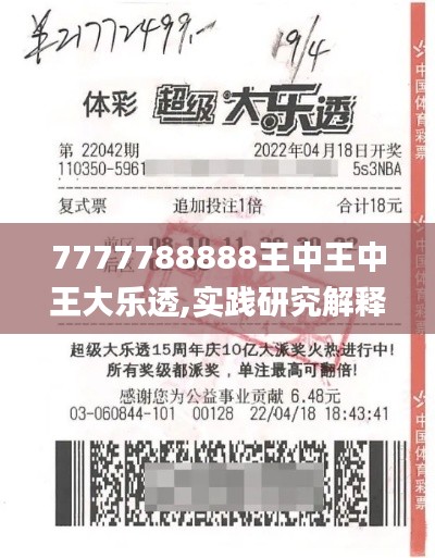 <p>在当下数字化浪潮中,数据分析和彩票研究已成为热门话题。"7777788888王中王中王大乐透"作为一种独特的彩票形式,引起了广大彩票爱好者的浓厚兴趣,本文将深入探讨这一彩票话题,通过实践研究、解释和定义,全面剖析其背后的魅力。</p>