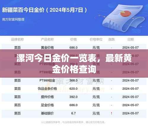 随着全球经济的不断发展和金融市场的日益繁荣,黄金作为一种重要的贵金属和投资工具,备受人们关注,漯河作为河南省的一个重要城市,其黄金市场的动态也备受关注,本文将为大家带来漯河最新金价查询表今日及相关内容。