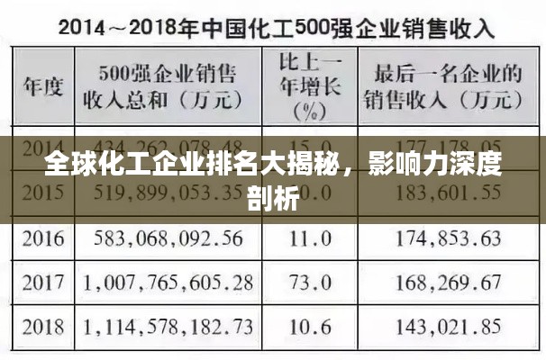 随着全球经济的飞速发展,化工行业作为支撑国民经济发展的重要产业之一,其发展趋势及企业排名一直备受关注,本文将为您揭示全球化工企业的排名及其影响力分析,以更好地了解化工行业的全球竞争格局和未来发展趋势。