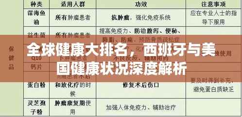 在当今世界,健康已成为人们最为关注的话题之一,随着生活水平的提高,人们对于健康的追求也日益增强,在各国之间,健康状况的排名如何呢?本文将重点探讨西班牙和美国的健康排名,以及两国在健康领域的表现。
