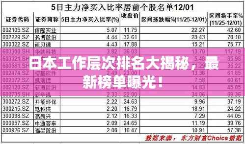 随着日本经济的持续繁荣与发展,越来越多的人对日本的工作层次排名表产生了浓厚的兴趣,本文将围绕“日本工作层次排名表最新”这一主题,为读者揭示日本当前的工作层次排名及相关情况。