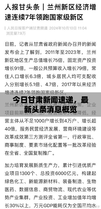 甘肃省今日的新闻头条涵盖了经济发展、社会关注热点、环保工作、文化活动、交通出行以及天气预报等多个方面,这些新闻报道展示了甘肃省在各个领域取得的积极进展和成果,也反映了当地人民的努力和奋斗,我们期待甘肃在未来继续取得更多的成就和发展。