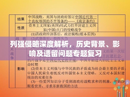 在历史的长河中,列强侵略是一段重要的篇章,这一专题复习旨在帮助学生深入理解列强的侵略行为及其背后的原因、影响,以及其在全球历史进程中的地位和作用,通过本次复习,学生们将能够更全面地认识这一历史现象,提高历史分析和批判性思维能力。
