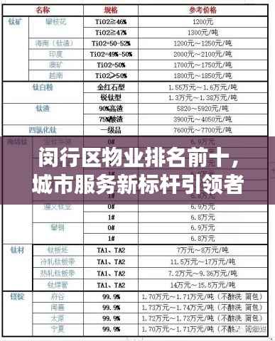 作为上海市的重要行政区之一,闵行区以其独特的地理位置和繁荣的经济发展吸引了众多目光,随着城市化进程的加快,物业管理在闵行区的地位日益凸显,本文将为您介绍闵行区物业排名前十名,这些企业在提供优质物业服务方面表现卓越,共同引领城市服务新标杆。