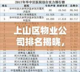 根据行业口碑、服务质量、管理水平、客户满意度等因素,上山区物业公司排名如下: