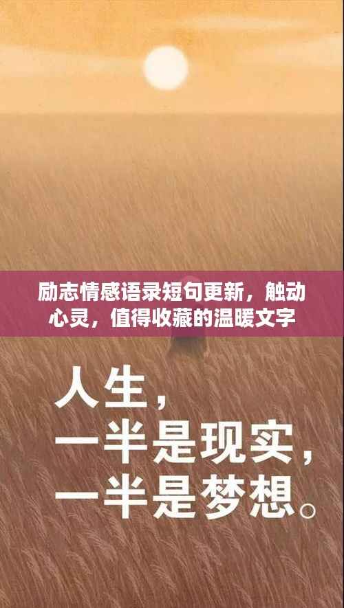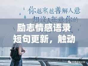 在这个纷繁喧嚣的世界里,每个人都需要一些励志的话语来鼓舞自己,激发内心的力量,励志情感语录短句,简洁而富有力量,像一盏明灯,照亮我们前行的道路,以下是近期更新的励志情感语录短句,希望能带给你正能量和勇气。