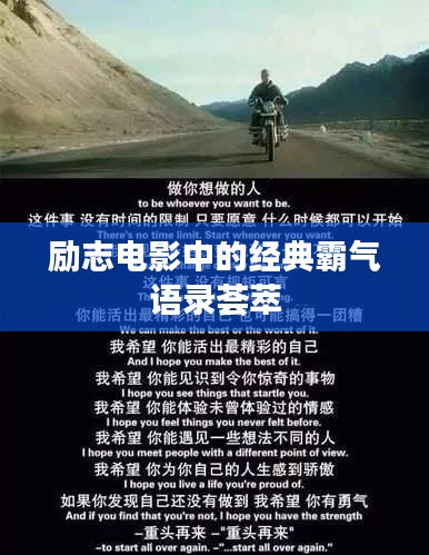 电影作为一种深受人们喜爱的艺术形式,不仅带给观众视觉上的享受,更能通过其深入人心的台词和语录,激发人们的斗志和激情,本文将从励志电影中挑选出一些霸气的语录素材,希望能为大家带来正能量和鼓舞。